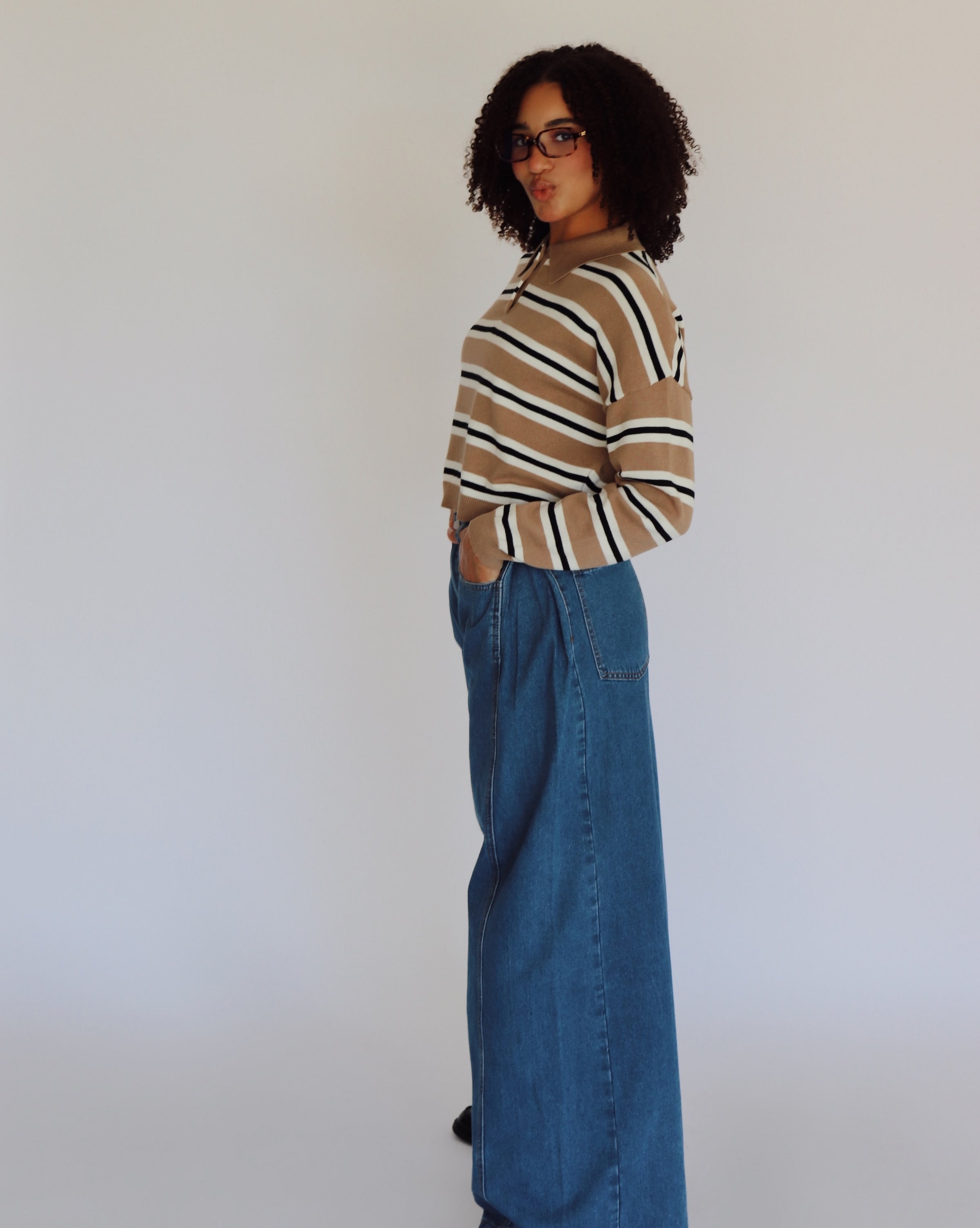 The Connor Jeans feature a high waist and wide-leg silhouette for a flattering, comfortable fit. Designed with side pleated details and a front button closure, these medium wash denim jeans offer a stylish blend of classic and modern elements. Perfect for creating versatile, everyday looks with confidence.