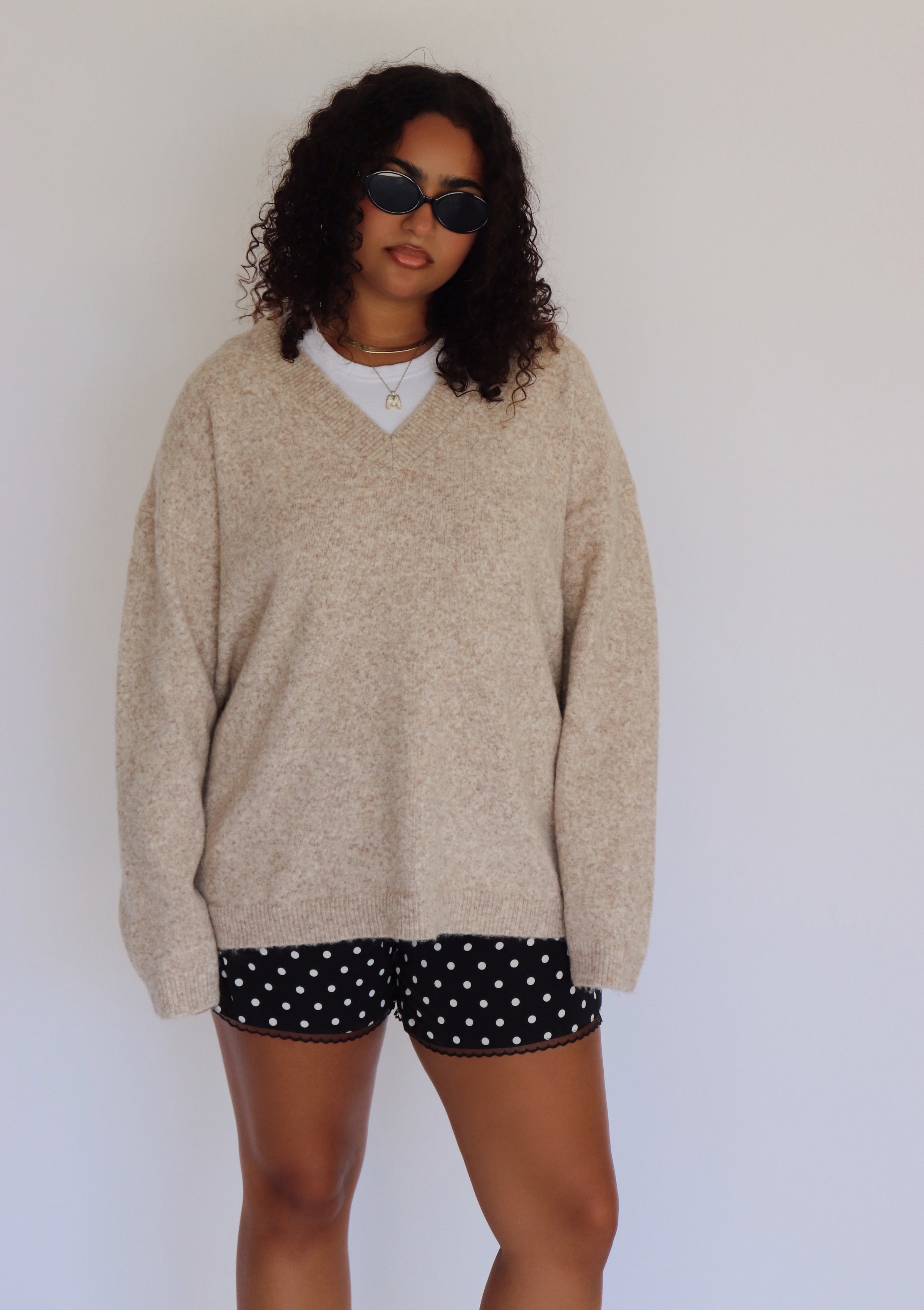 The Maeve Sweater in light taupe is your new go-to for cozy-chic vibes. Its wool mixed knit feels structured, while the relaxed fit and V neckline adds an effortless edge. Layer it over a fitted tee for that ultimate cool girl look that'll have you feeling stylish and cozy all day.