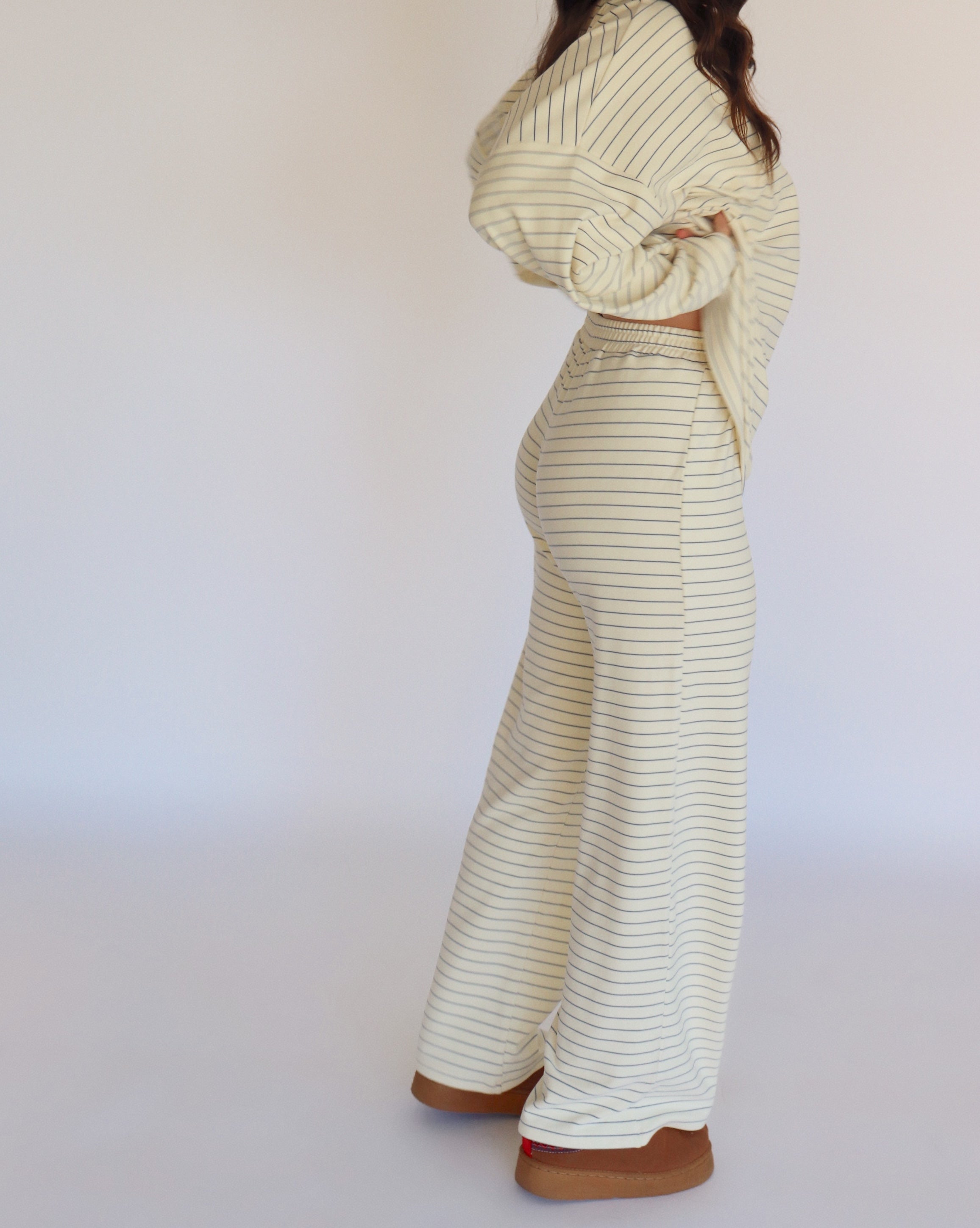Get ready to lounge in ultimate comfort with our Stevie Fleece Pants. These cream fleece pants with blue stripes feature a stretchy elastic waistband for a comfy + cozy fit. So soft, you’ll never want to take them off! Style them with the matching top or a fitted tank for laid-back vibes. Perfect for chilling, errands, or cozy days in—your new favorite go-to!