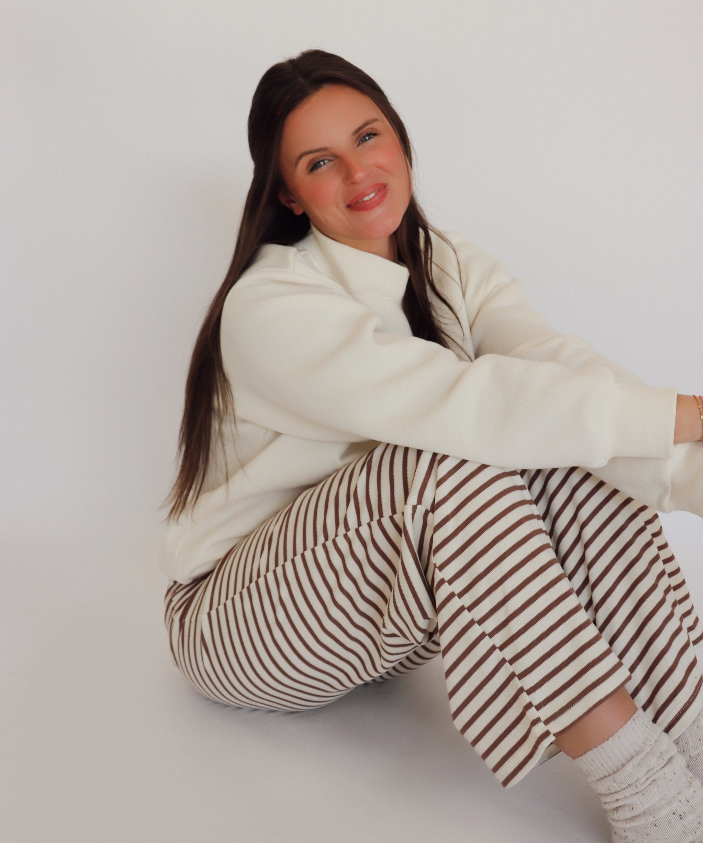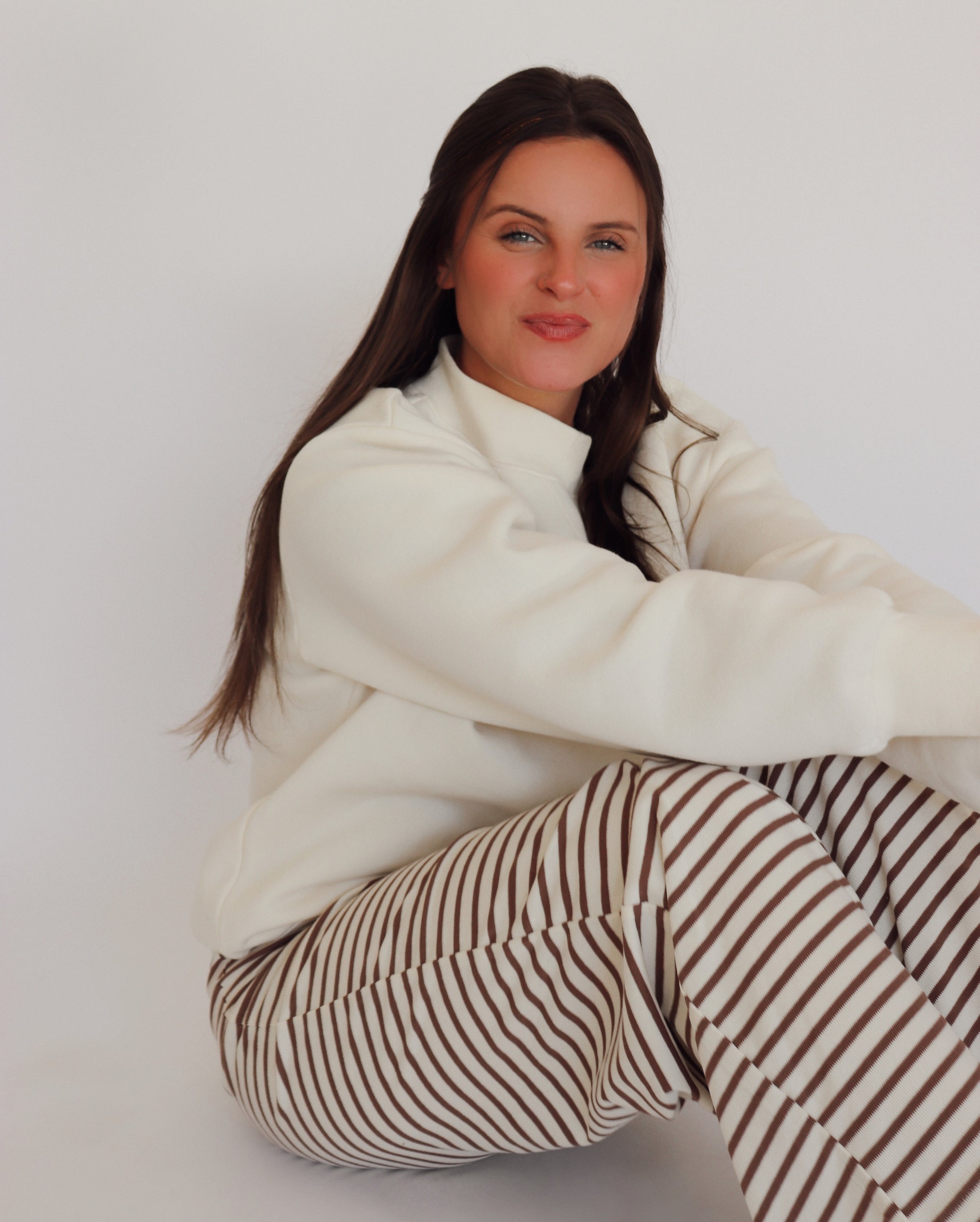 Meet the Billie Pullover: your new cozy crush. This cream mockneck pullover is oversized and effortlessly cool, making comfort look seriously stylish. Pair it with boxer shorts for lounging, striped pants for a pop of fun, or leggings for ultimate ease. It’s the perfect fit for every laid-back vibe in your wardrobe.