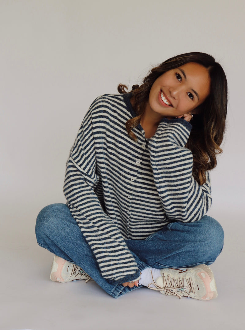 Hollis Cardigan - Dark Blue Stripes